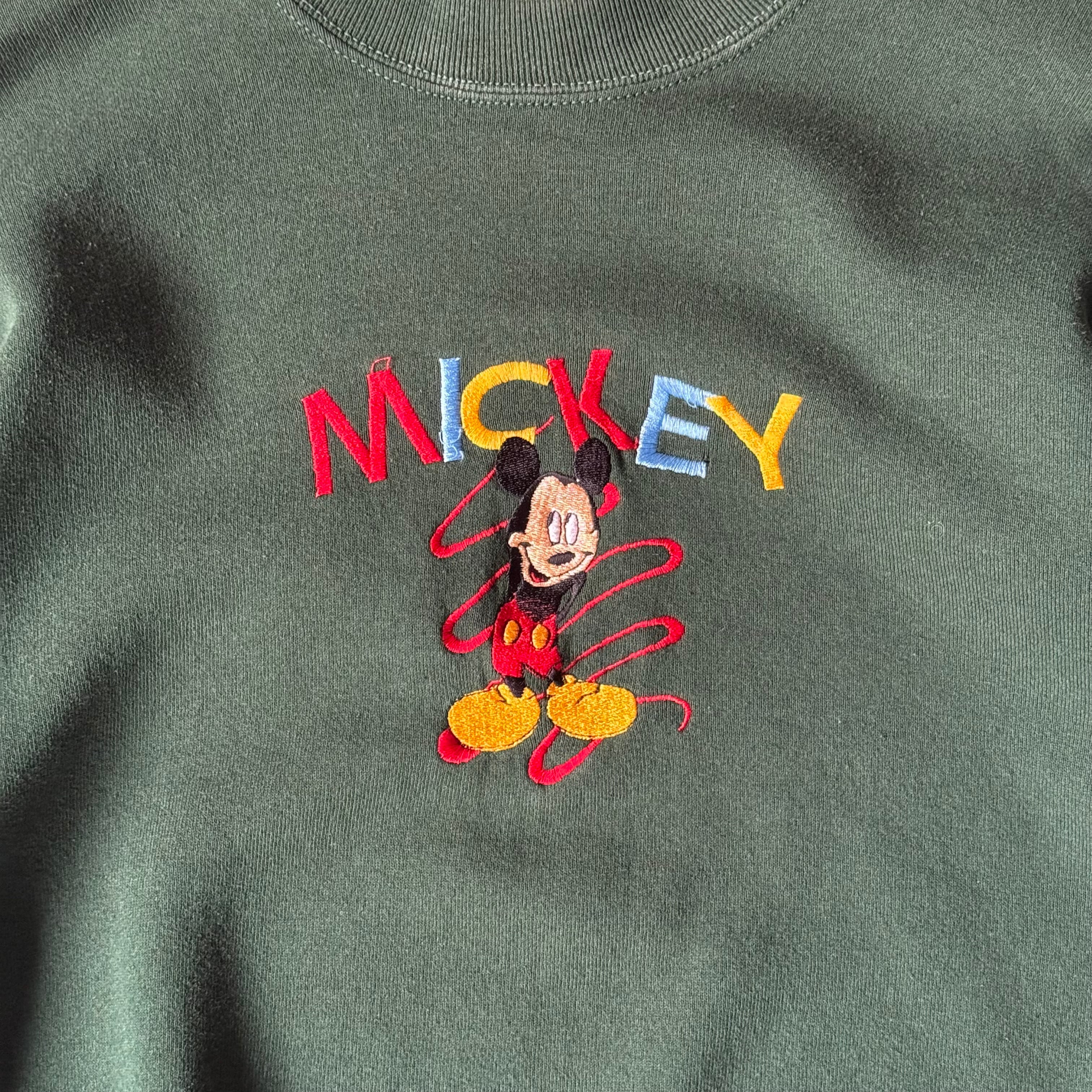 ・フロントにミッキーマウスと「MICKEY」ロゴのカラフルな総刺繍デザイン