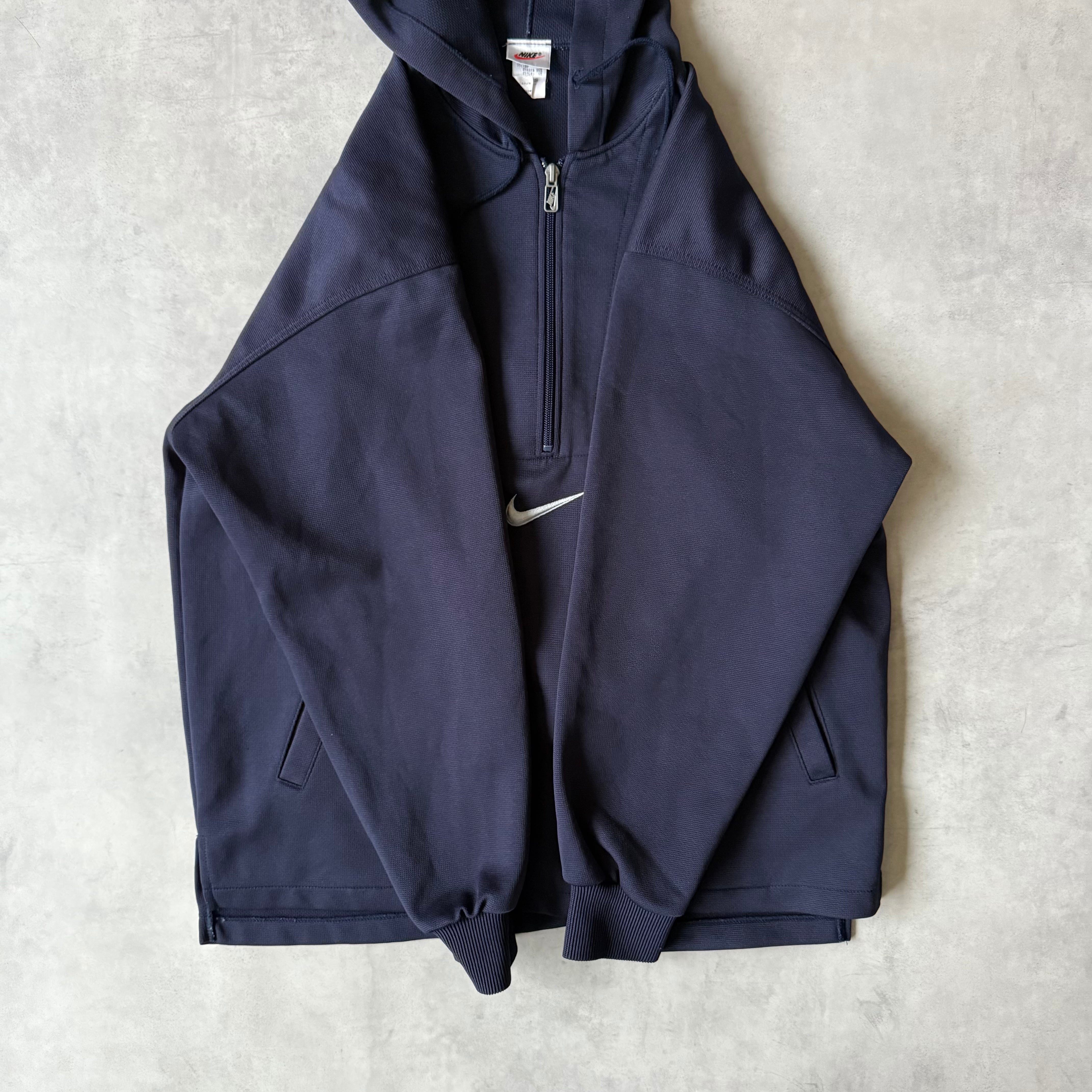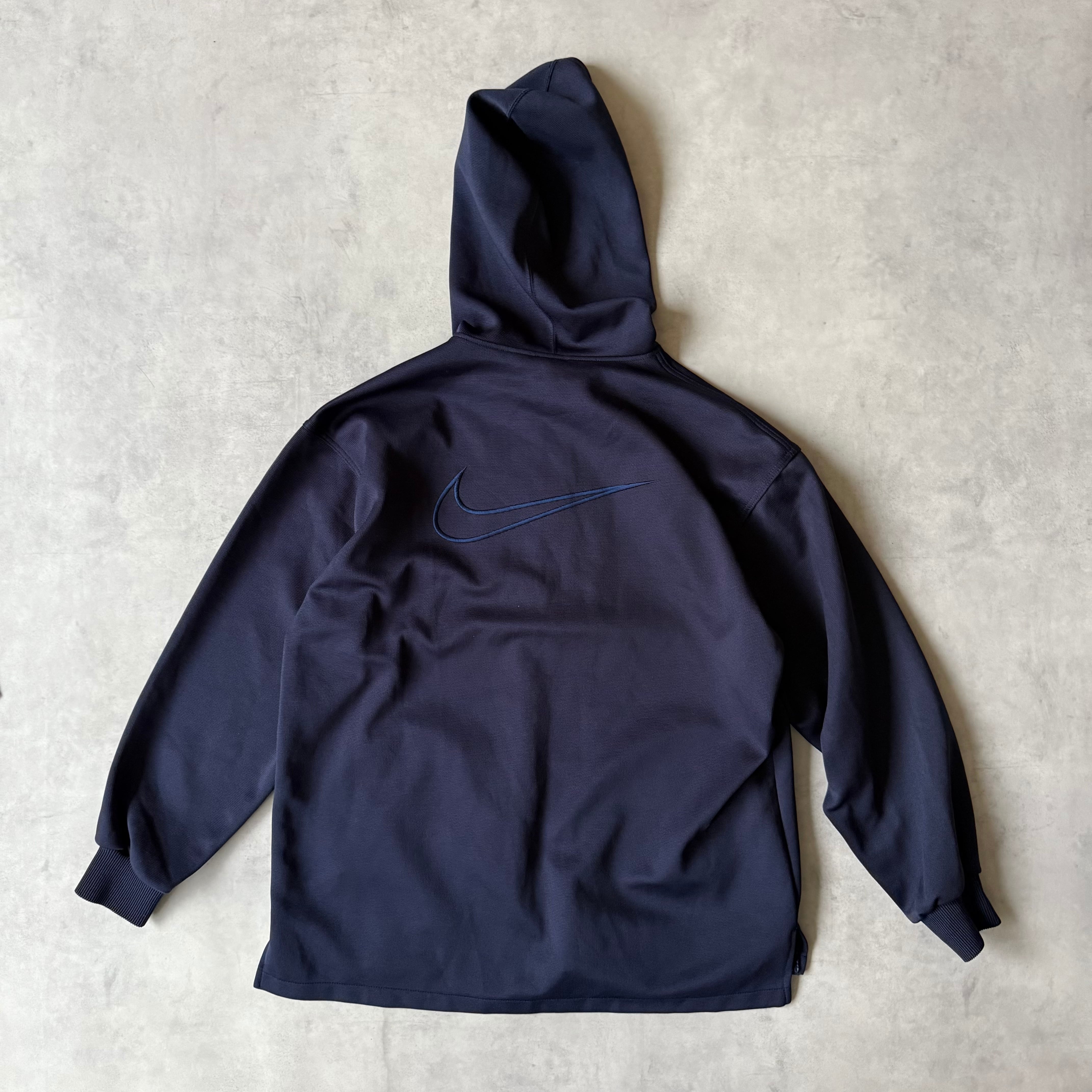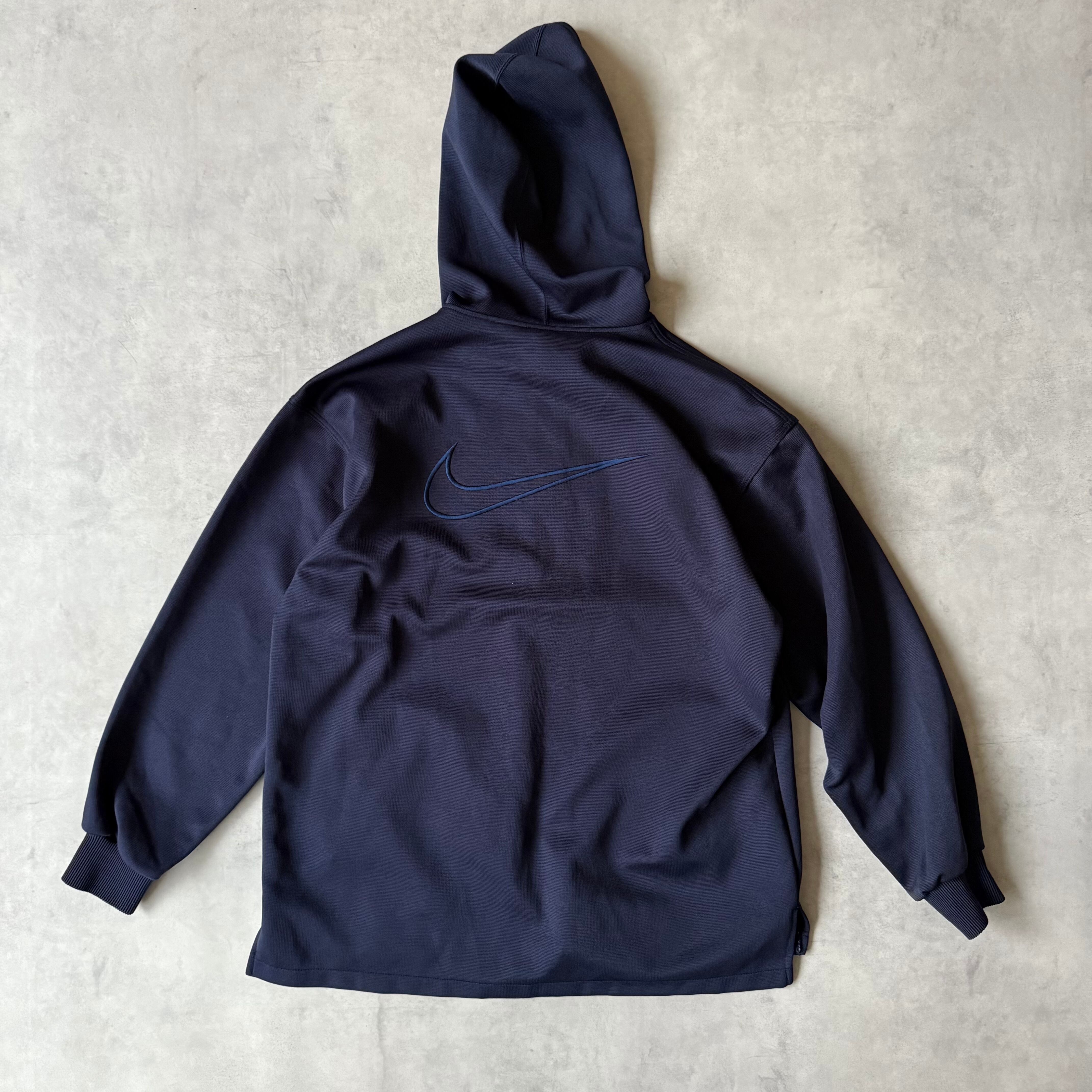 ・フロントにホワイトのスウッシュ刺繍、バックには大胆なビッグスウッシュの縁取り刺繍が施されたインパクトのあるデザイン。
