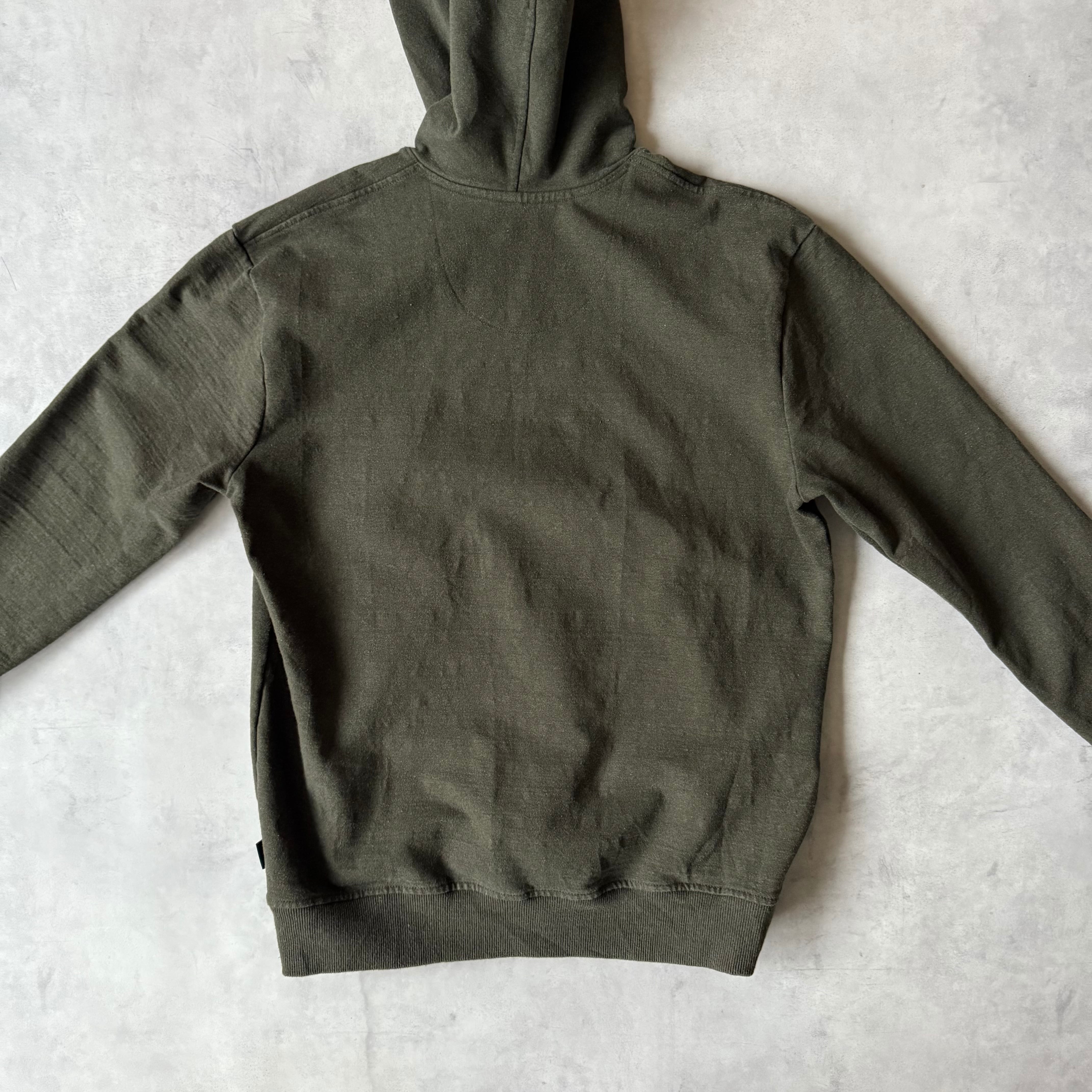 ・フロントにカンガルーポケット、左裾にブランドタグ付き。
