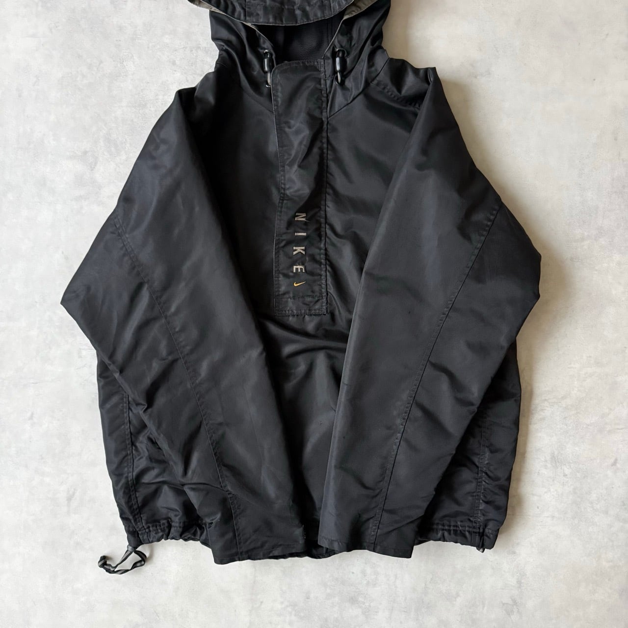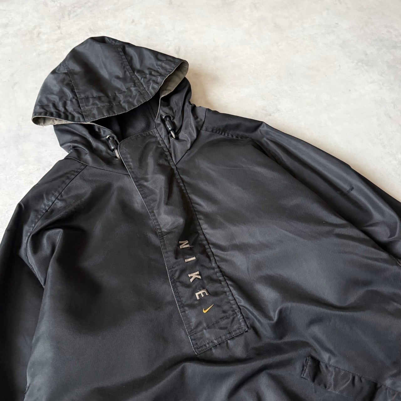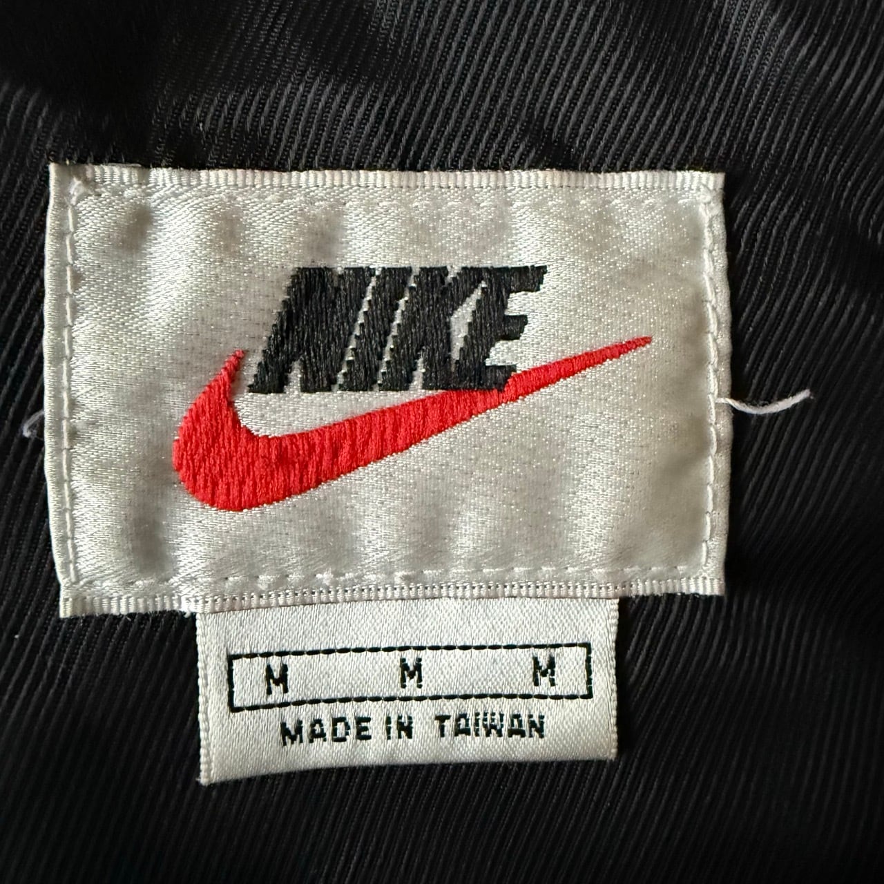 90年代(銀タグ)の希少なヴィンテージアイテムです。 フロント中央に「NIKE」の文字とスウッシュが縦に刺繍された、当時らしいデザインが特徴です。