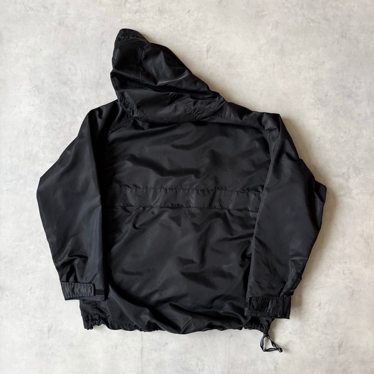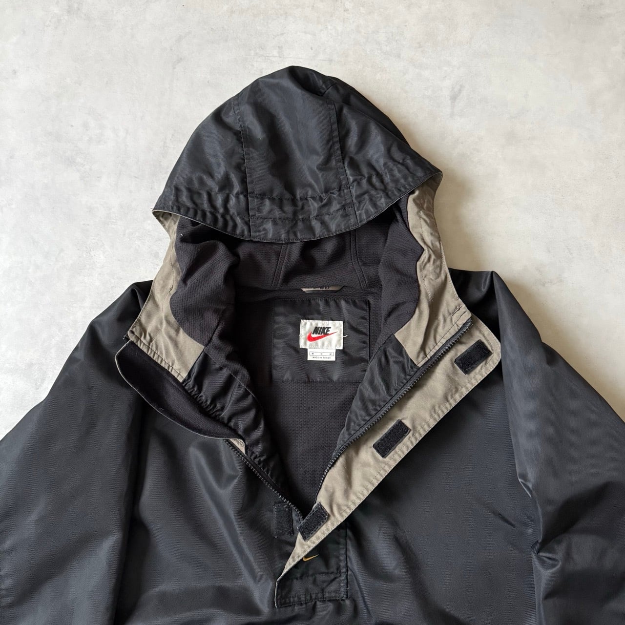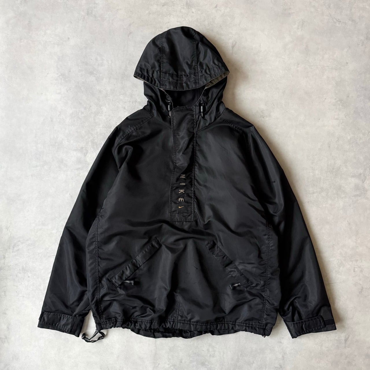 90年代(銀タグ)の希少なヴィンテージアイテムです。 フロント中央に「NIKE」の文字とスウッシュが縦に刺繍された、当時らしいデザインが特徴です。