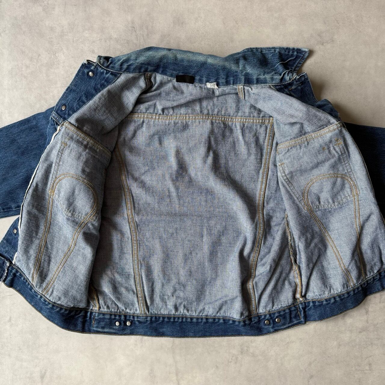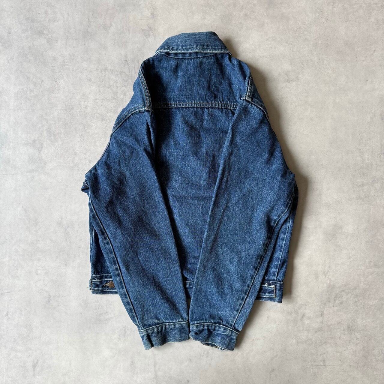 ヴィンテージ特有の深みのある色落ちと、しっかりとしたデニム生地の風合いが楽しめる一着です。