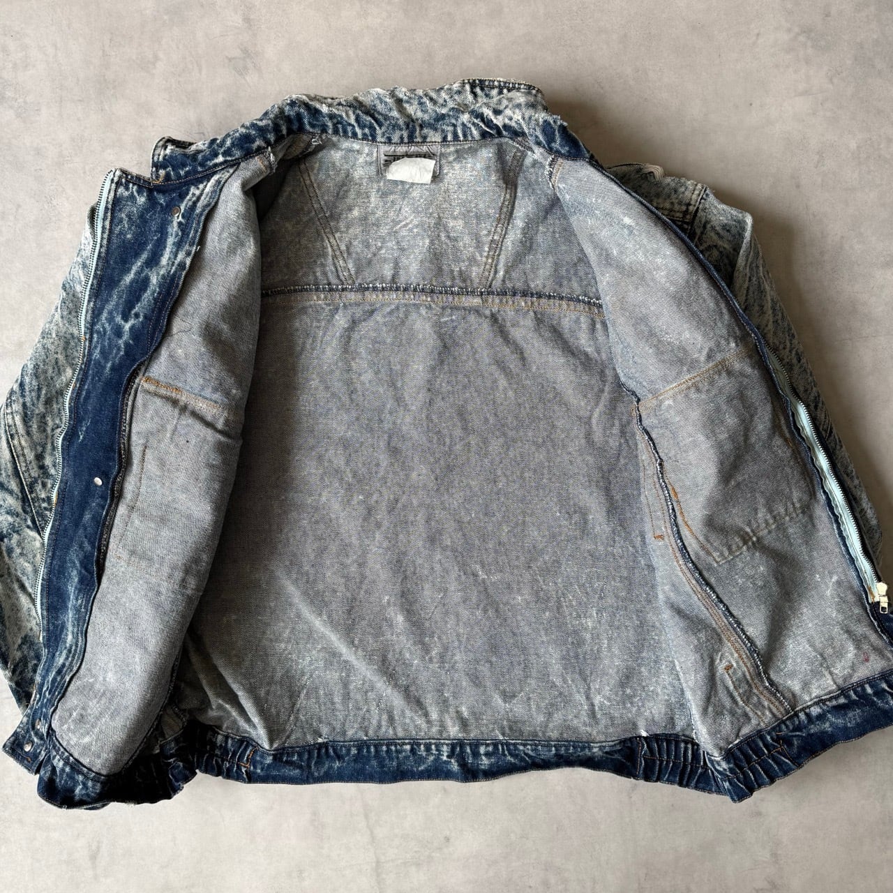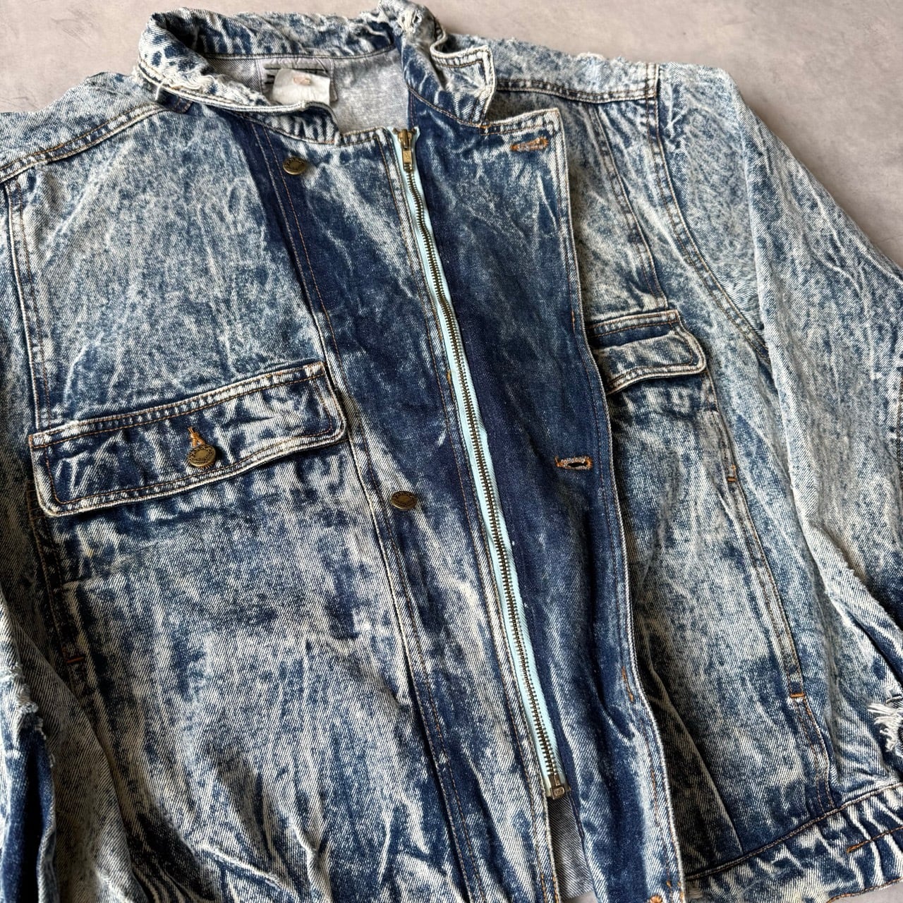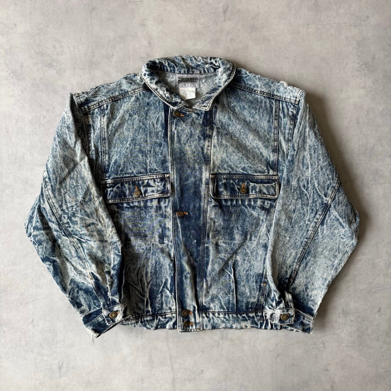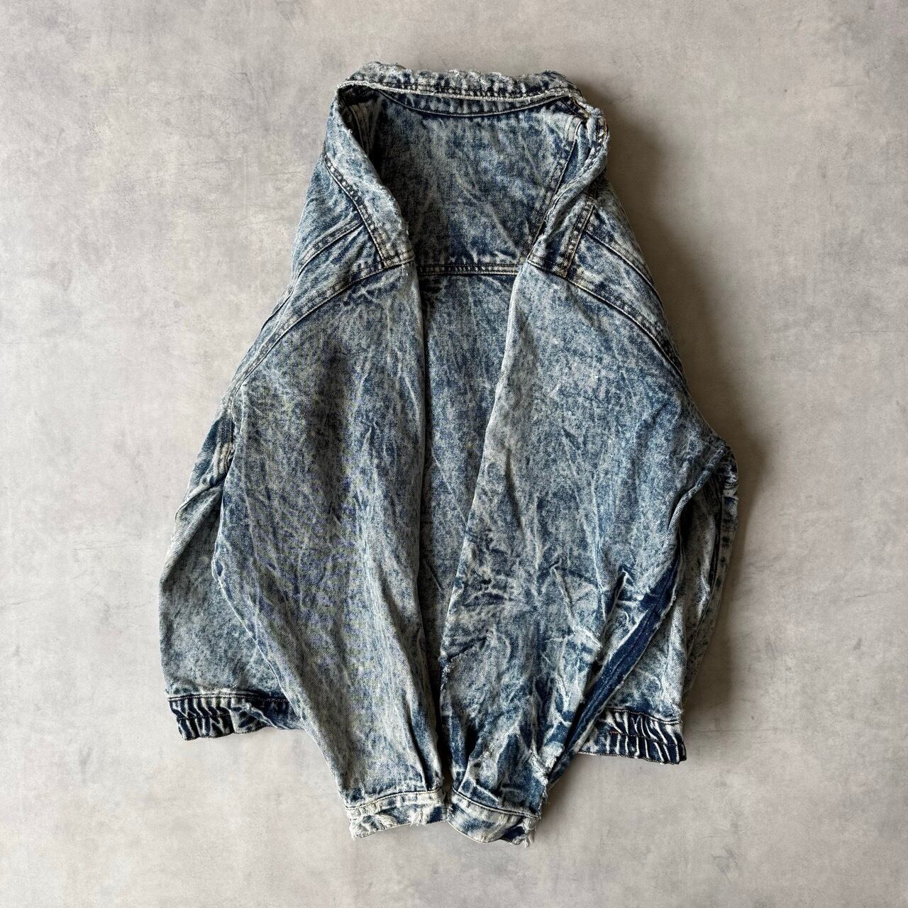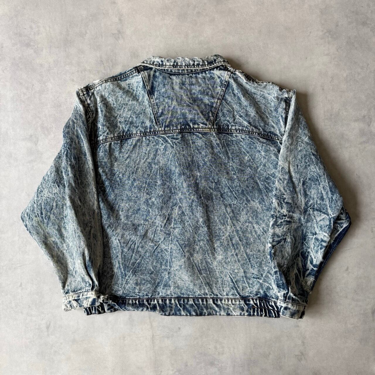・1980年代から90年代にかけて大流行した、鮮やかなコントラストが特徴のケミカルウォッシュデニムジャケットです。