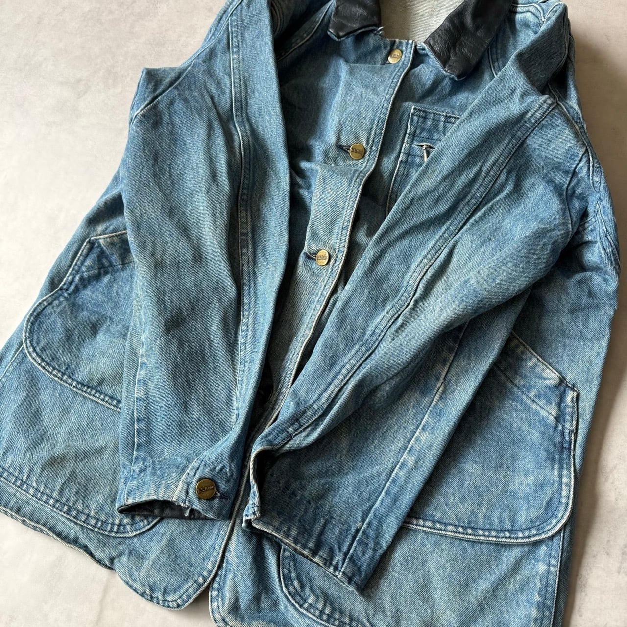 ・デニム特有の程よい色落ちやスレ、微細な薄汚れなどヴィンテージ感のある使用感は見受けられますが、致命的なダメージはなく、古着らしい良い雰囲気でまだまだ長くご愛用いただけるコンディションです。