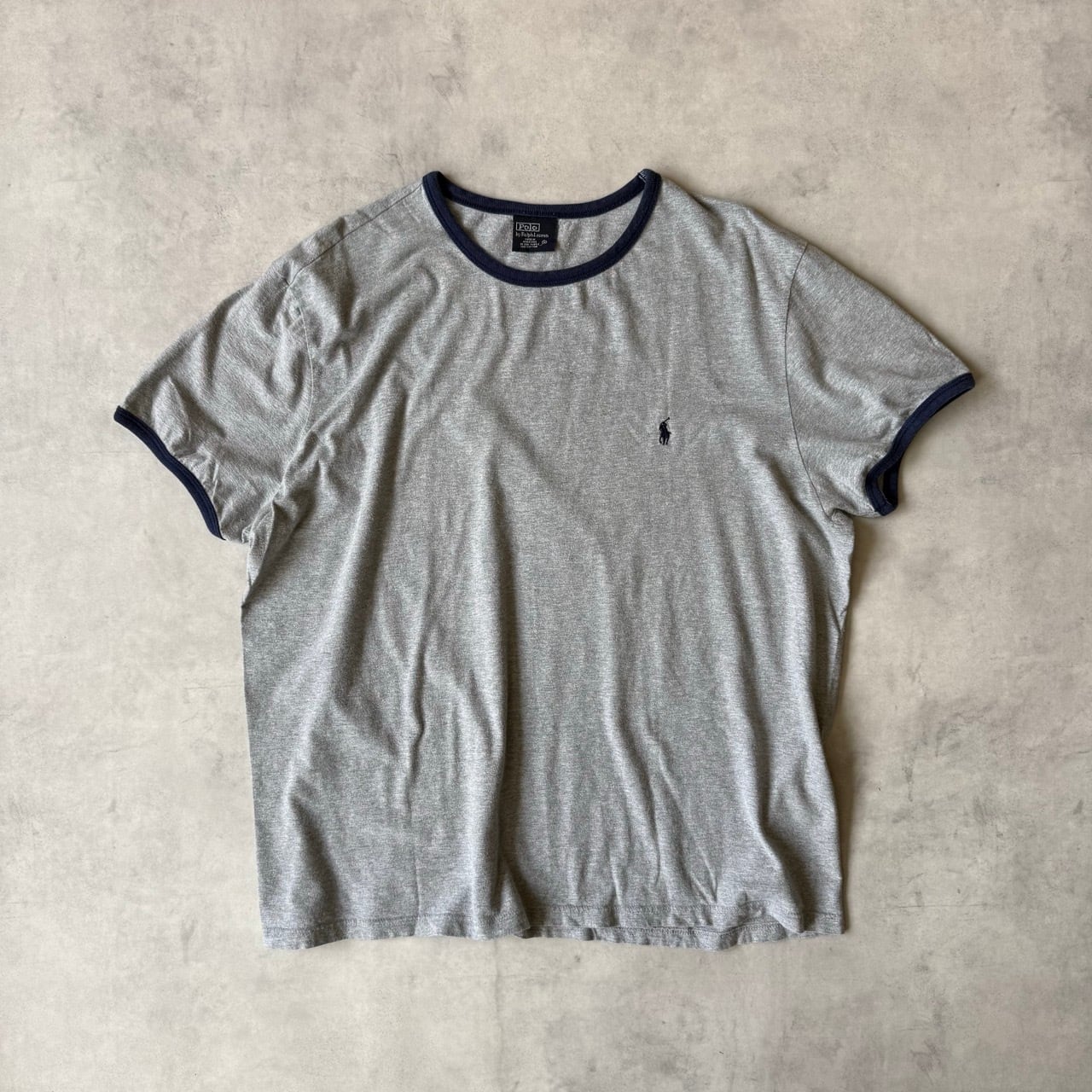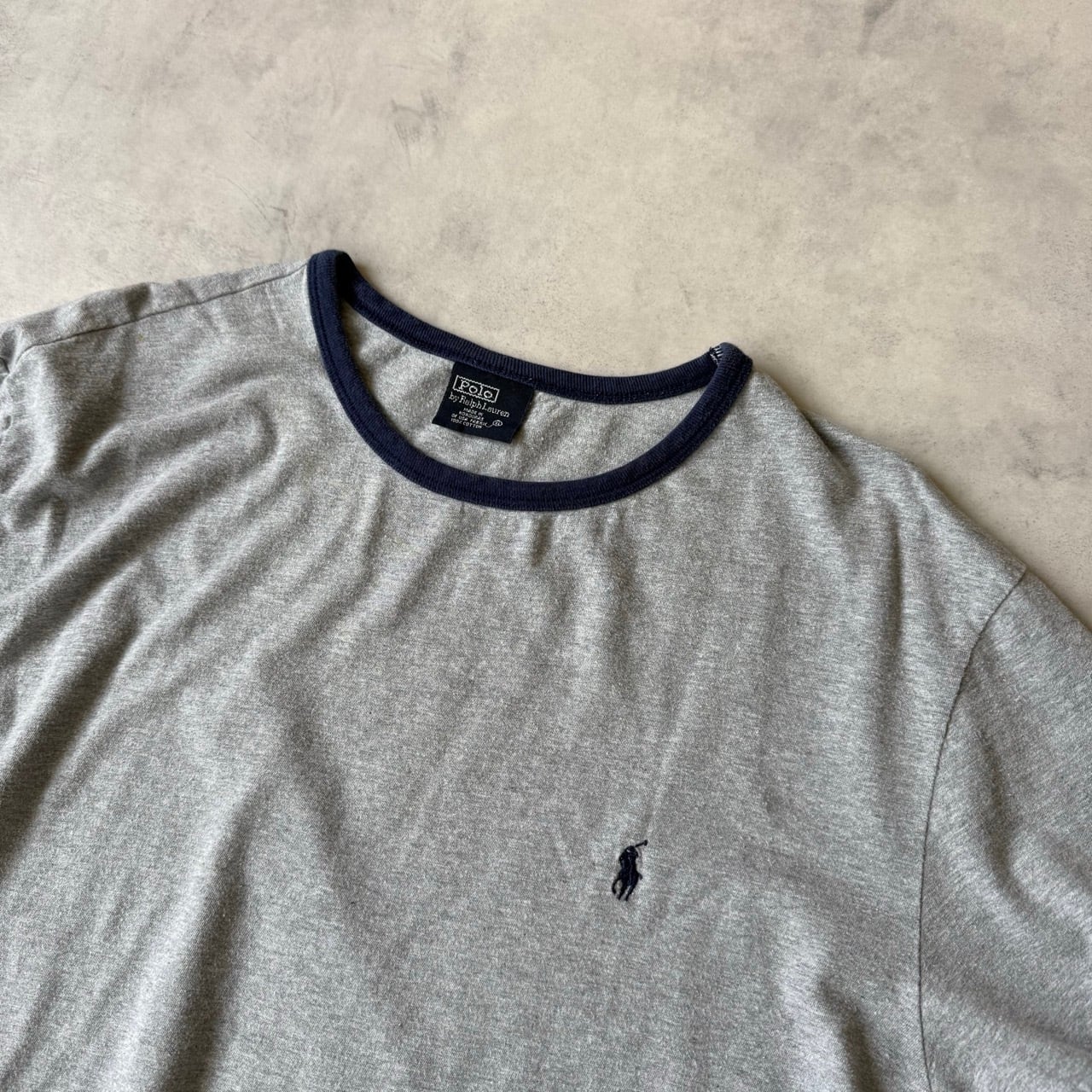 ・左胸にネイビーのポニー刺繍が施された、90年代頃の希少なヴィンテージリンガーTシャツです。