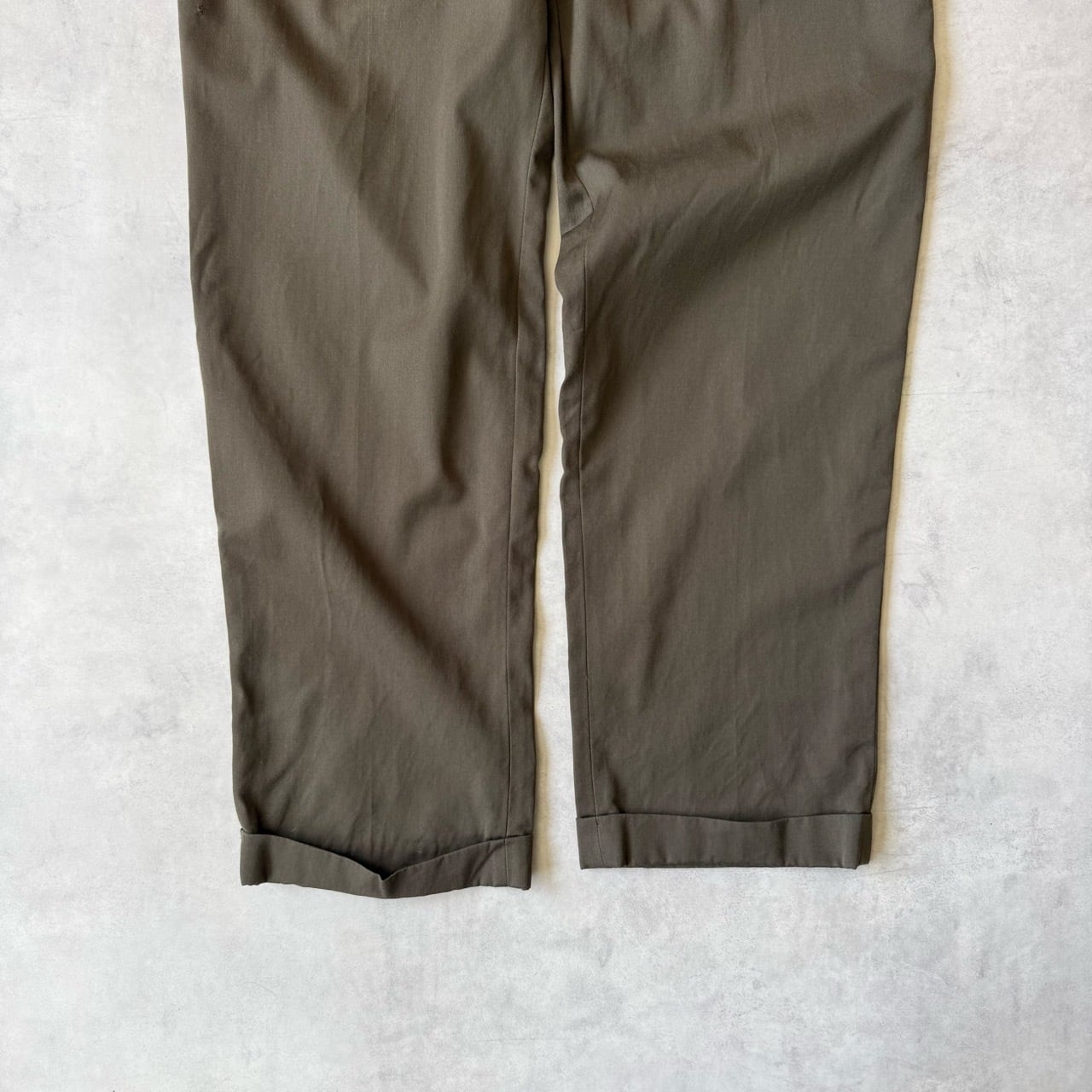 深みのある落ち着いたオリーブカラーが特徴で、程よくゆとりのあるワイドシルエットから裾にかけて緩やかにテーパードしています。
