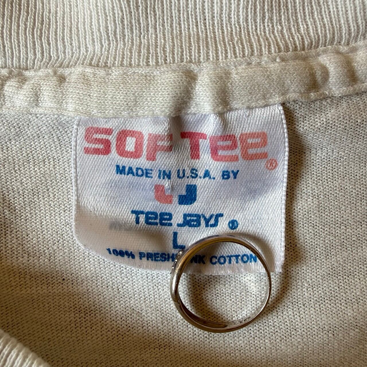 ボディは当時物らしい風合いの「SOF Tee by TEE JAYS」を使用しており、希少なMADE IN USA(アメリカ製)の一着。