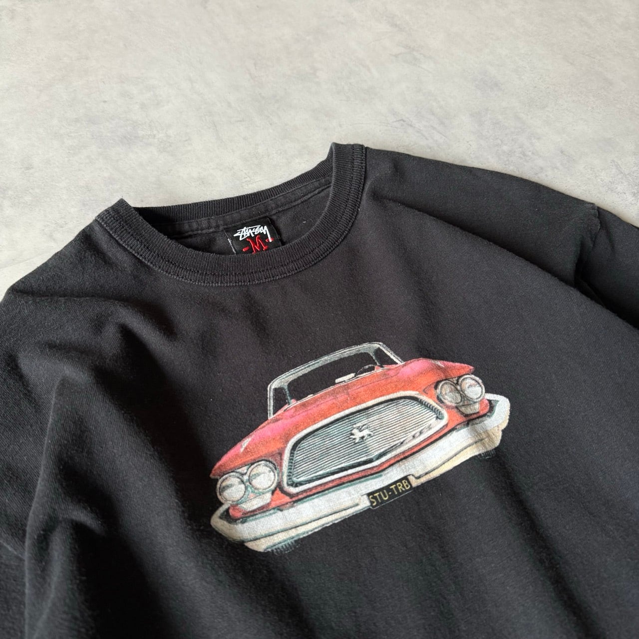 フロントにヴィンテージカーのグラフィック、バックにはダイス(サイコロ)と「ROLLIN' ON DUBS」のメッセージがプリントされた一着です。