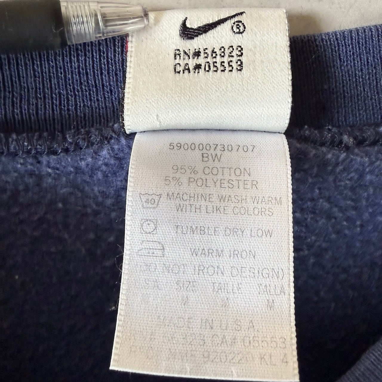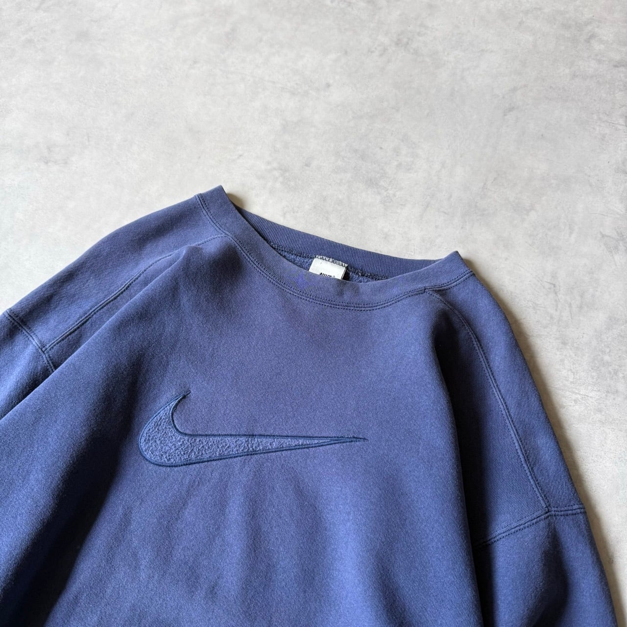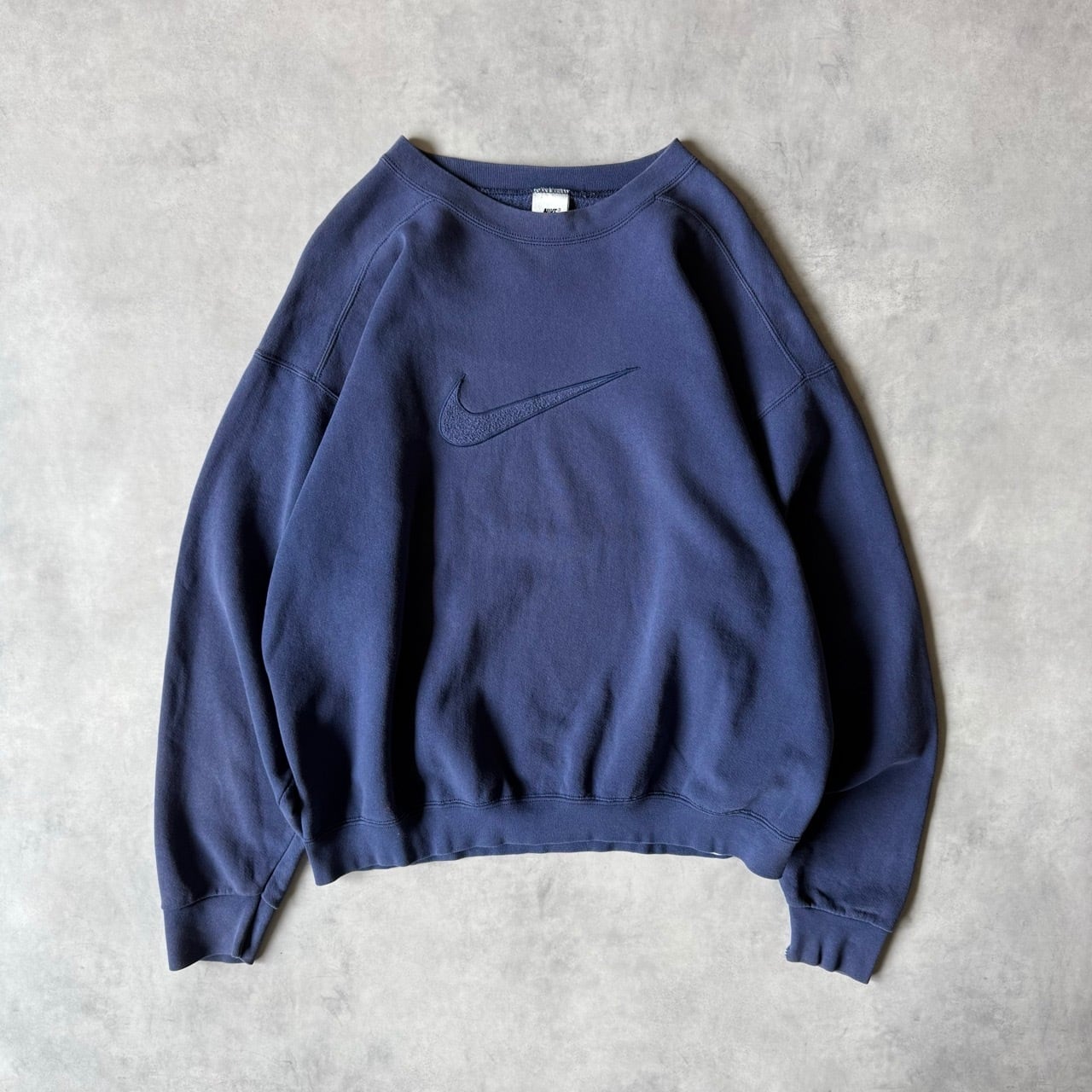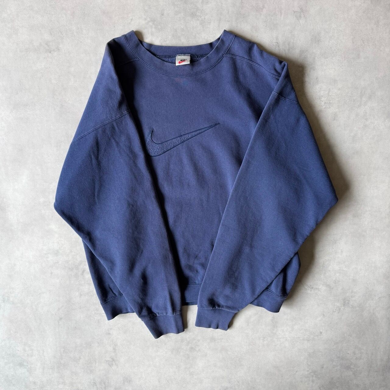 90年代の銀タグがついた希少な個体です。フロントには同色系の糸で大きくスウォッシュの刺繍が入っており、シンプルながらも存在感のあるデザインです。
