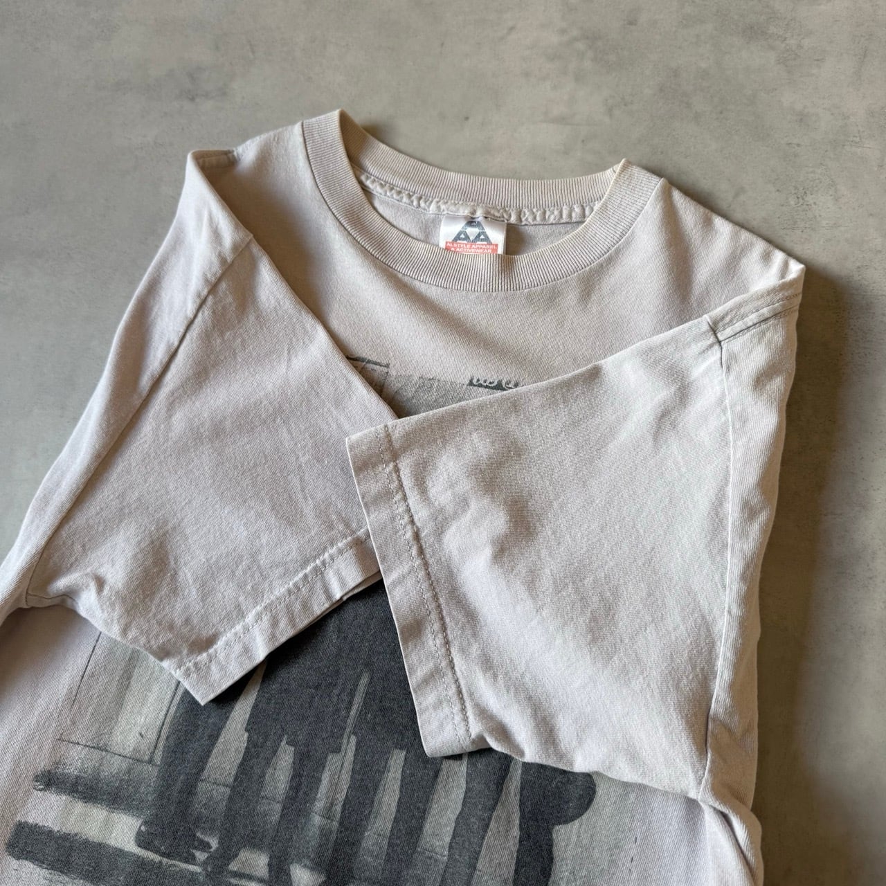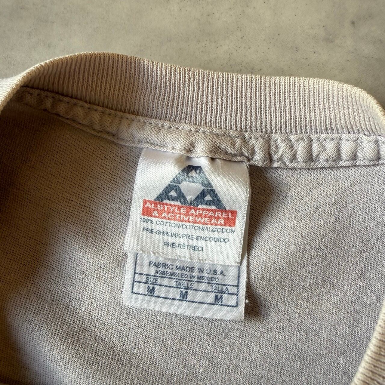 AAA(アルスタイル)ボディの2枚タグ仕様で、適度に使い込まれたフェード感と柔らかな生地感がヴィンテージらしい表情となっています。袖・裾ともにダブルステッチ仕様です。