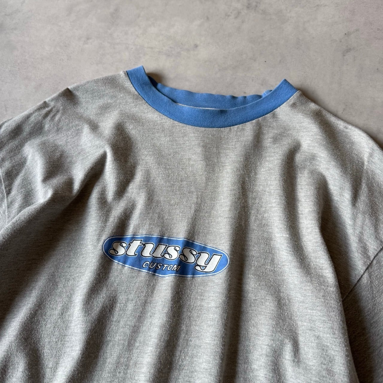 フロントにオーバル型の「stussy CUSTOM」ロゴがプリントされた、希少なオーストラリア製のヴィンテージTシャツです。
