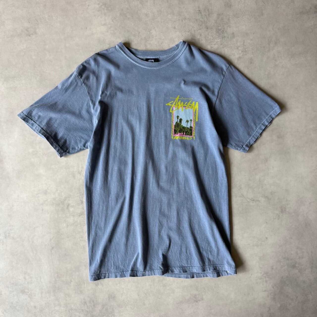 フロント左胸とバックには、サボテンやパームツリーが描かれた色鮮やかなフォトグラフィックとブランドロゴがプリントされており、ストリートシーンに映える一着です。