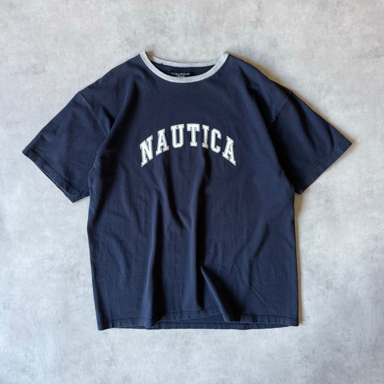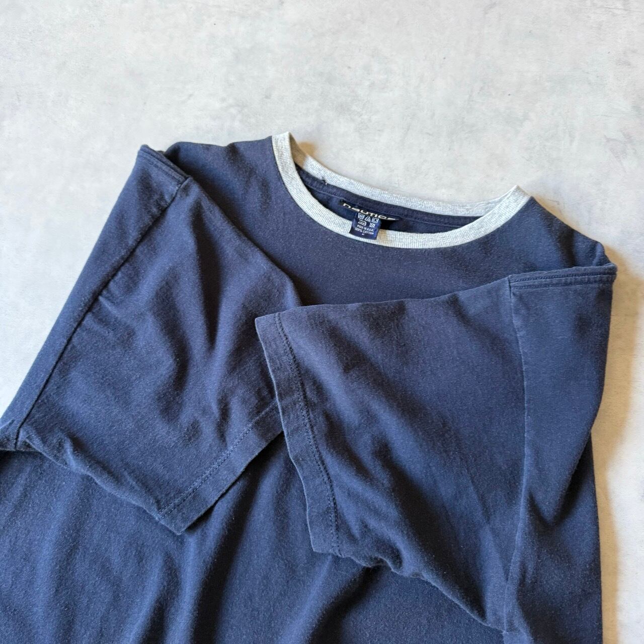 ・ネイビーボディに、首元のリブがグレーになったリンガー(トリム)デザイン。