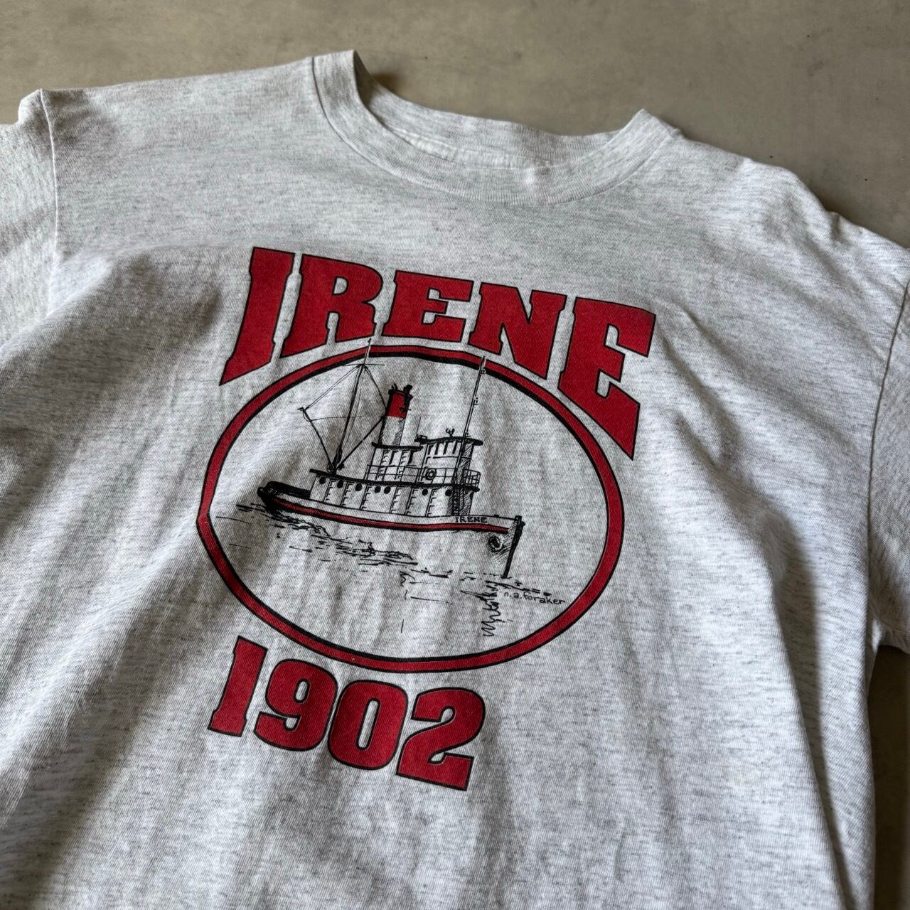 フロントには1902年建造のタグボート「IRENE」のグラフィック、バックには「TALK'S CHEAP - LET'S RACE!」のメッセージが入った両面プリント仕様。