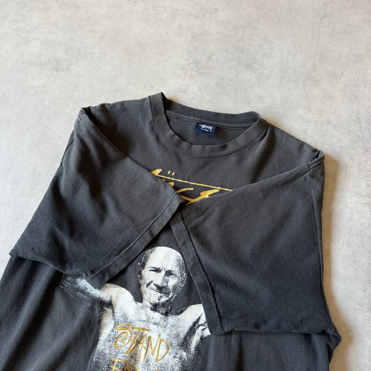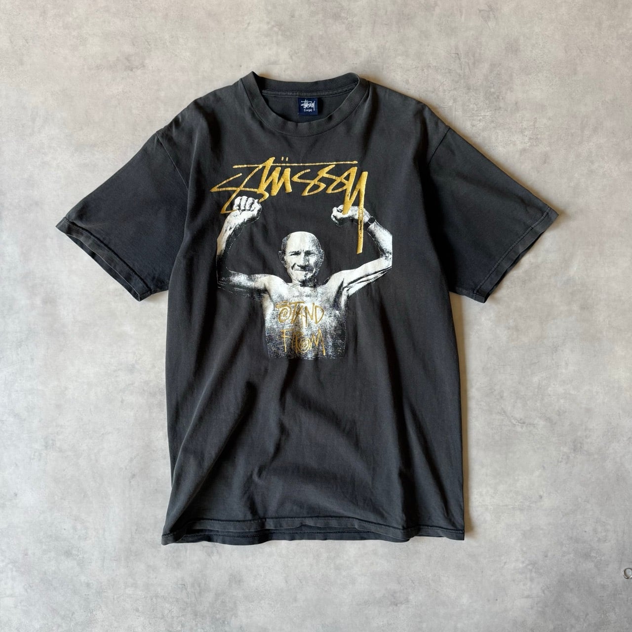 フロントに「STAND FIRM」のメッセージとフォトプリント、ゴールドのブランドロゴを配したインパクトのあるデザインです。
